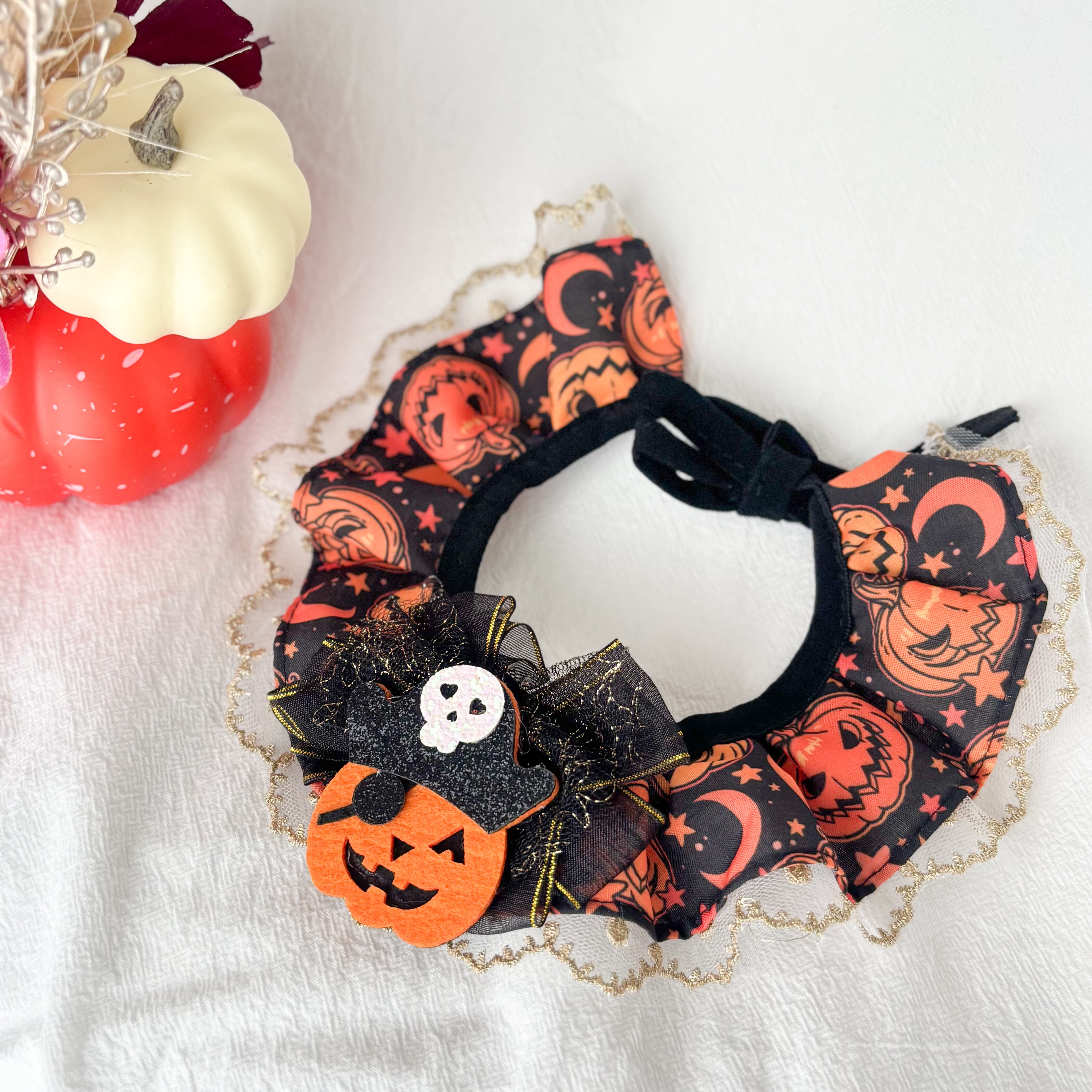首元を華やかに演出するハロウィンビブです!