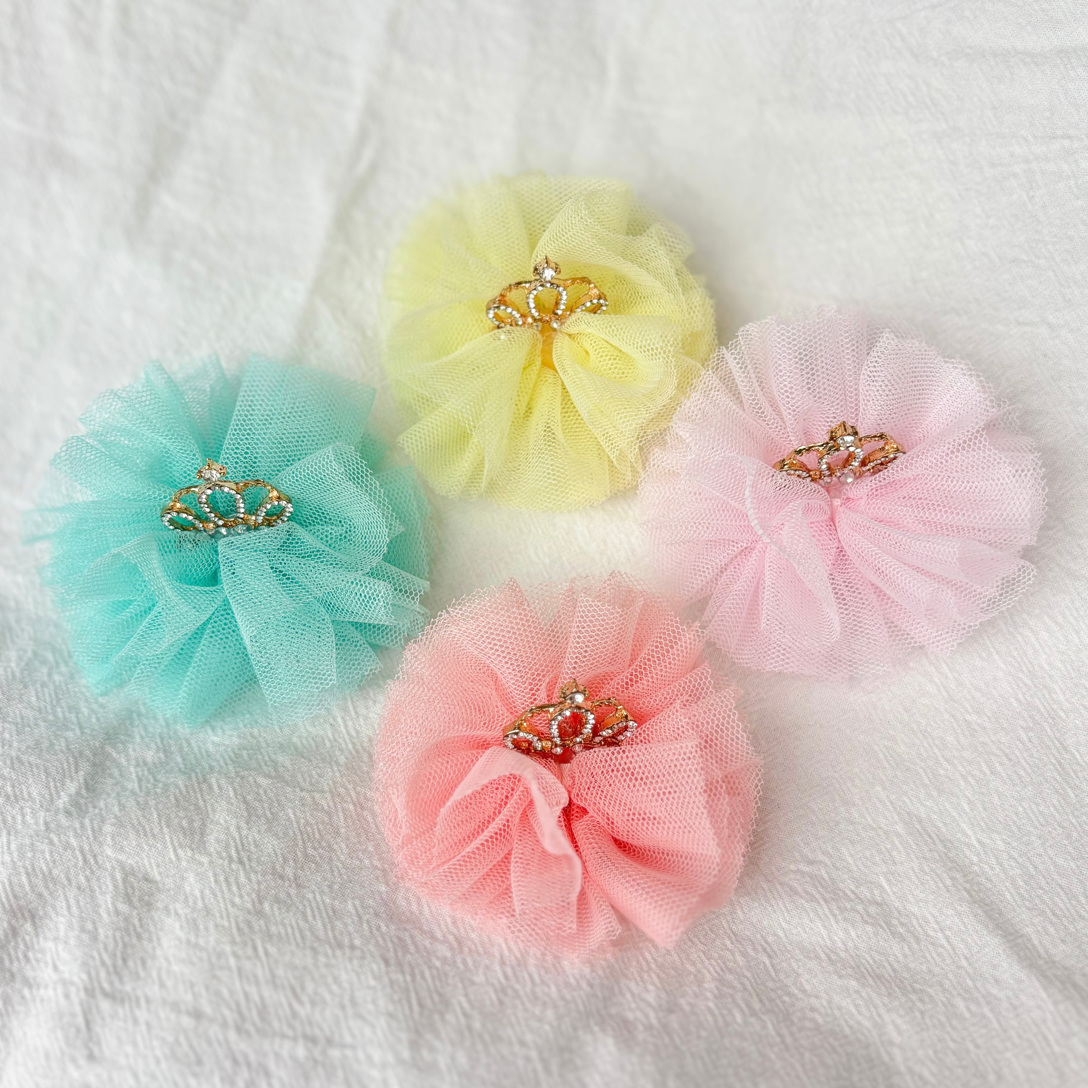 ふんわりとしたチュールに、きらめくティアラを添えたティアラフラッフィーピン。