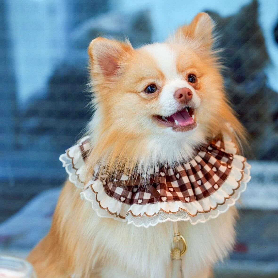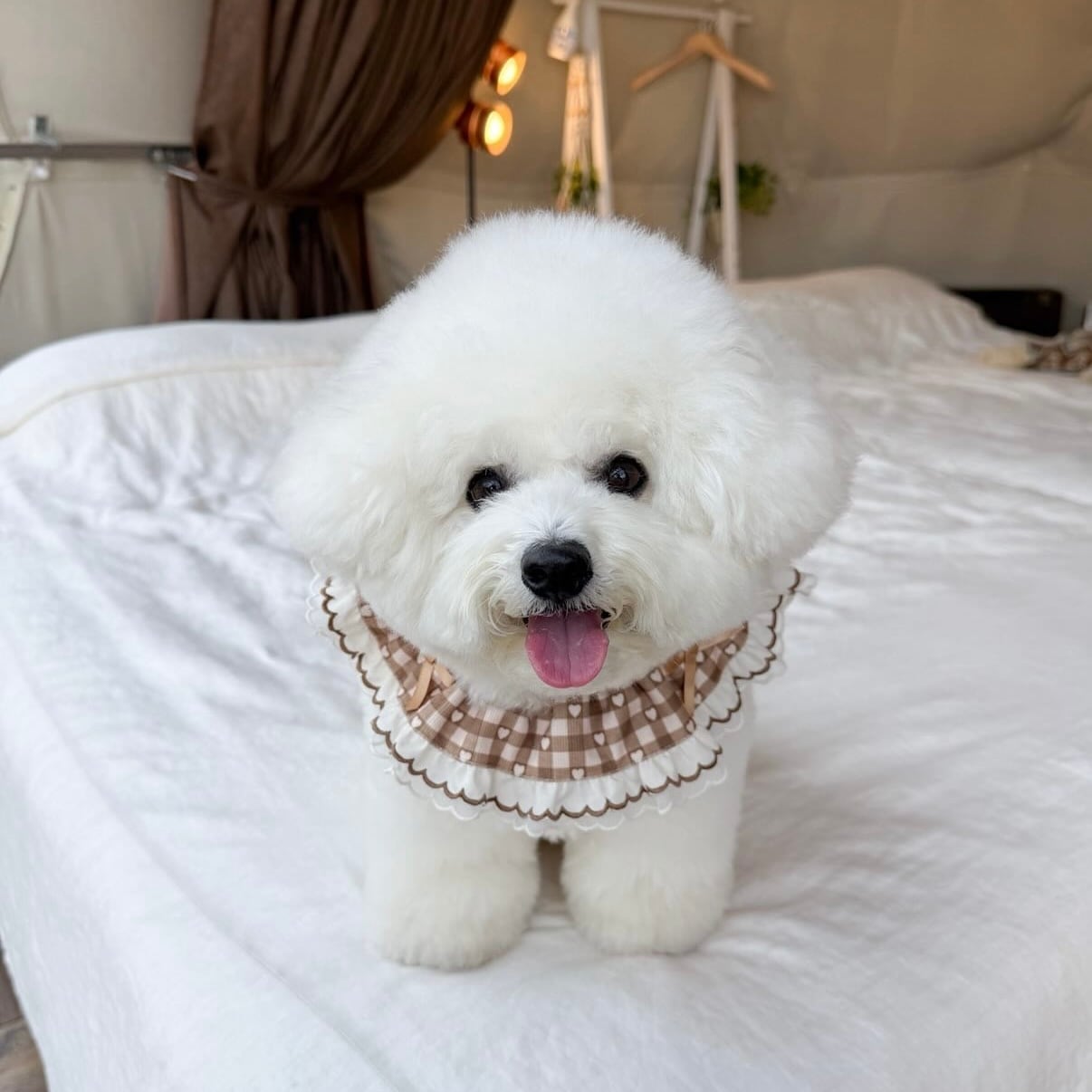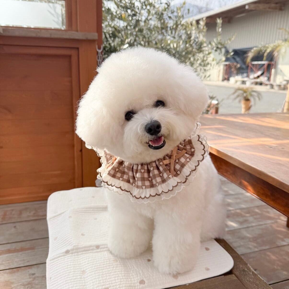 たっぷりのフリルとリボンを添えたBonheur.オリジナルのビブです。