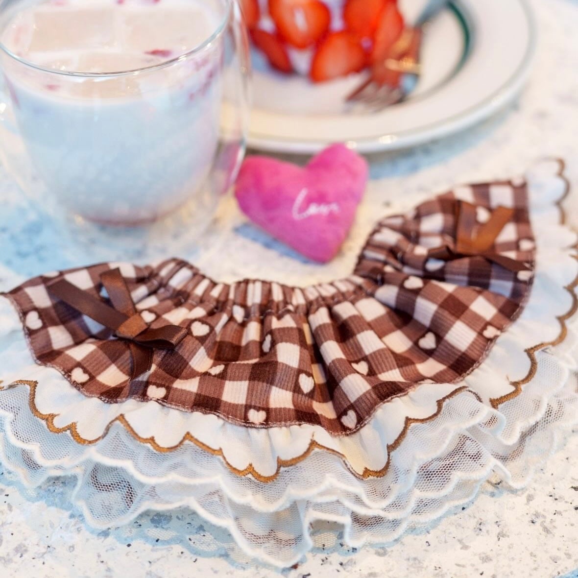 小さなハート柄のギンガムチェック生地に、