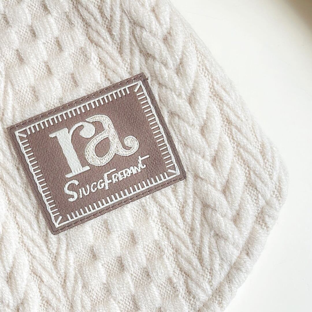 カラーは明るいアプリコット色で、ケーブル編みデザインでお洒落さをプラス。