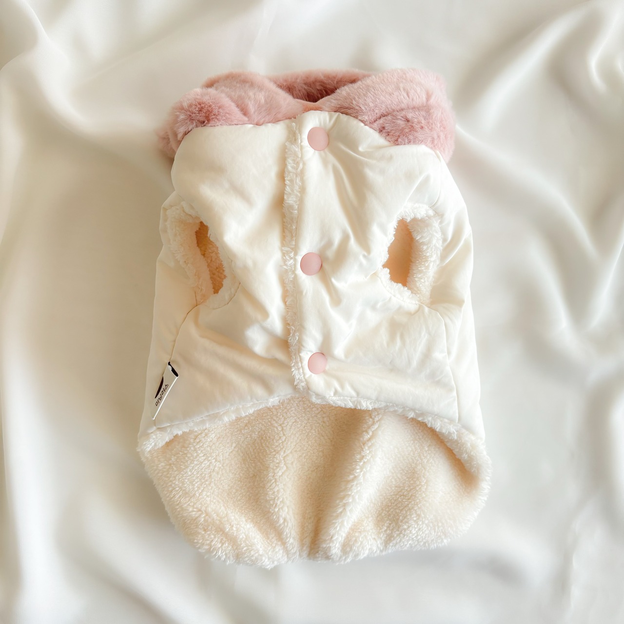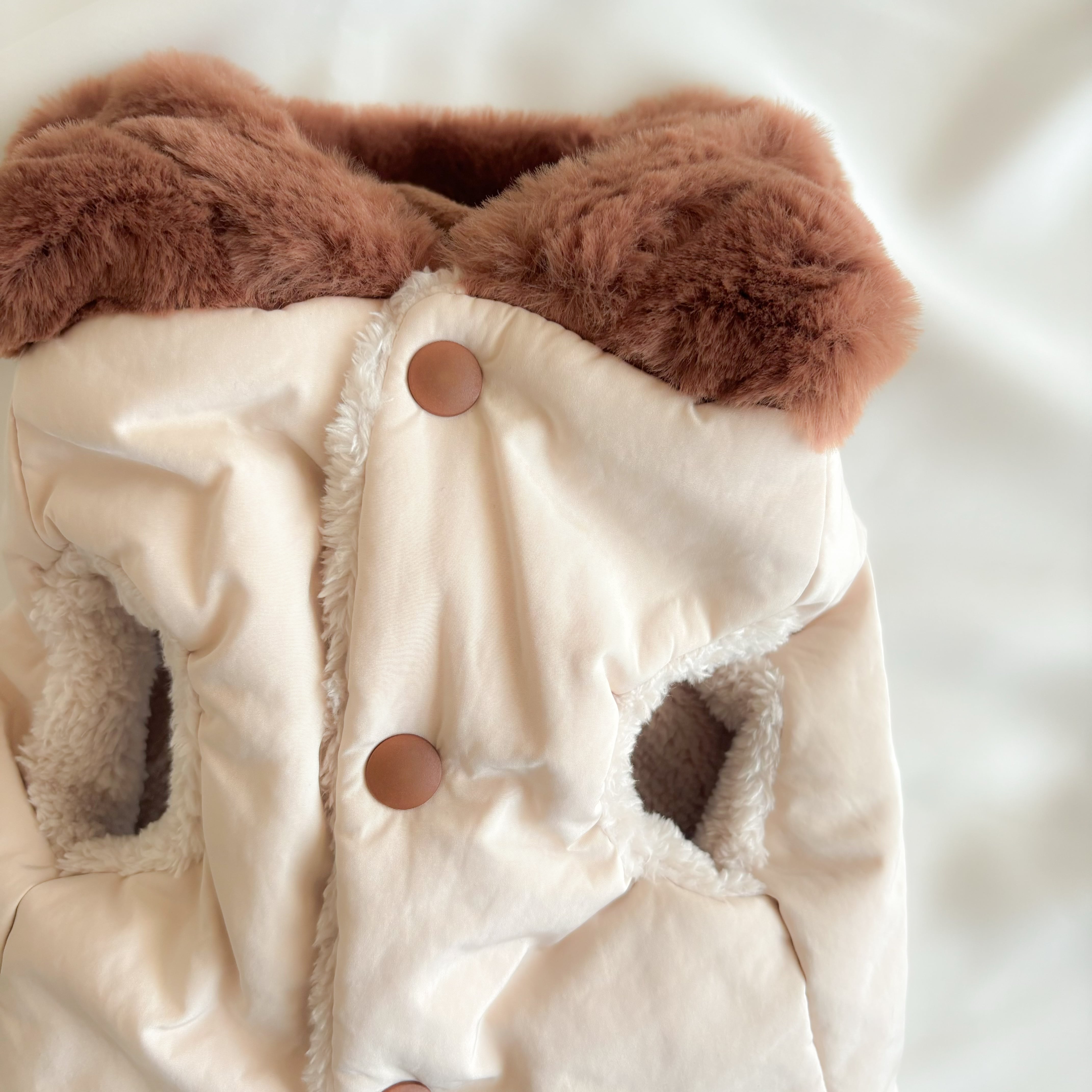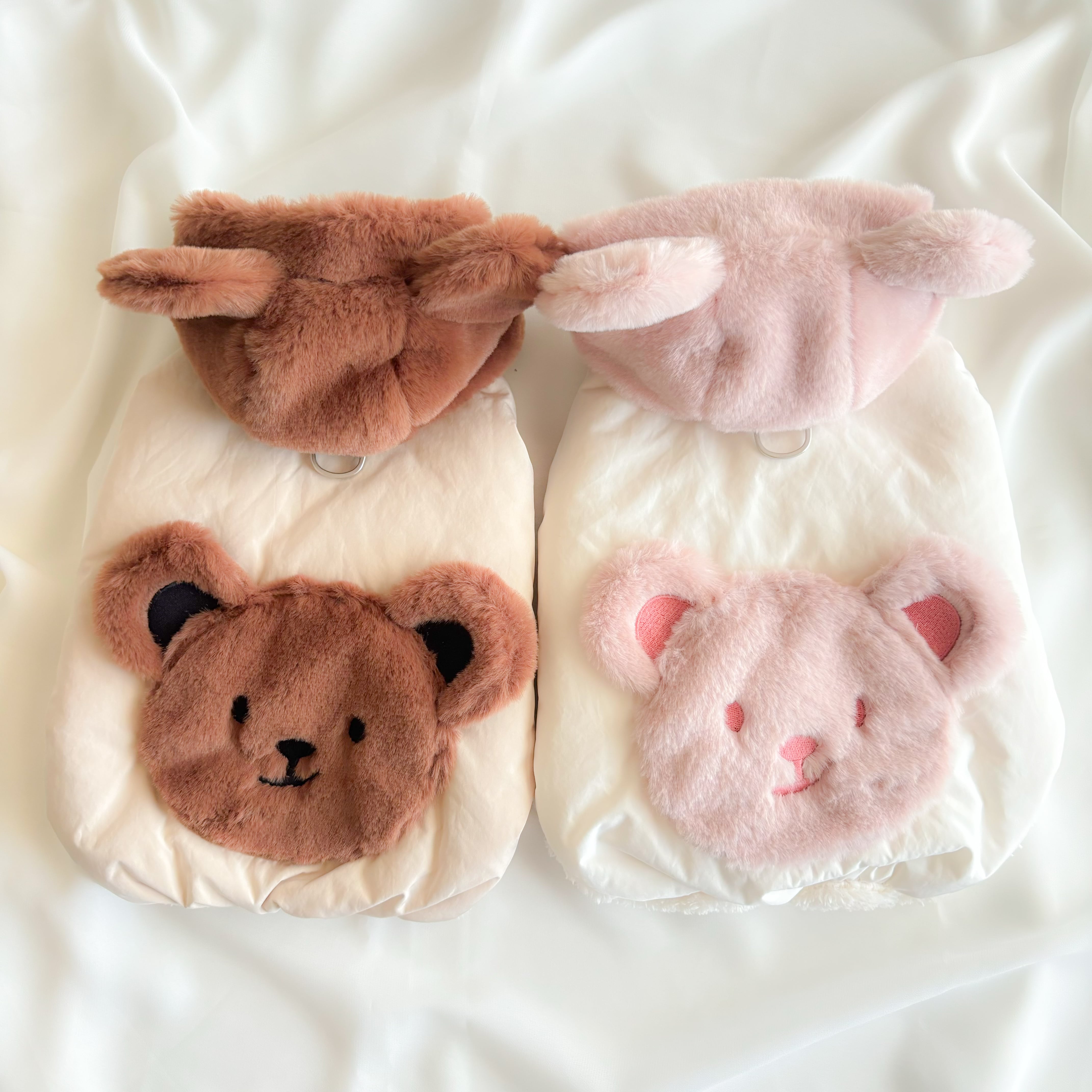 フードと背中のクマちゃんには高級フェイクファー素材が使用されているので、とっても手触りが良いのもポイント!